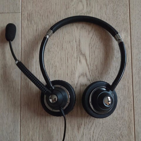 Headset med mikrofon. Passer til computer med USB-indgang. Kun været brugt én gang.