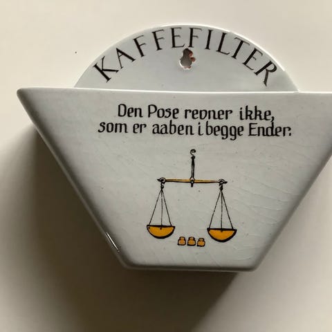 Flot kaffefilterholder fra Bygdo keramik i Karlslunde, med blomstermotiv