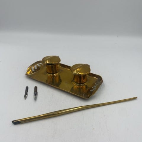 Flot stand uden skader på porcelæn, dog sidder låg på de 2 små beholdere ikke længere fast i deres fine messing beslag med hængsler