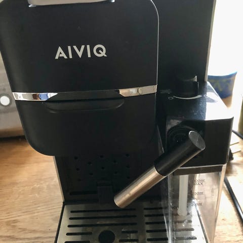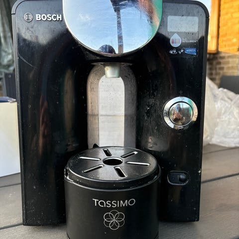Maskinen er en kapselbaseret model med aftagelig drypbakke og betjeningsknapper på fronten. Den har låg øverst til indsætning af kapsler og er udstyret med strømledning til almindelig stikkontakt. Medfølgende brugervejledning ses på billederne. Velegnet til brygning af enkeltkopper kaffe ved hjælp af kompatible kaffekapsler.