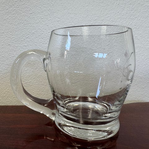 Antik porcelænskop med beskytter så et overskæg ikke kom i berøring med indhold. Ikke noget mælkeskæg her.