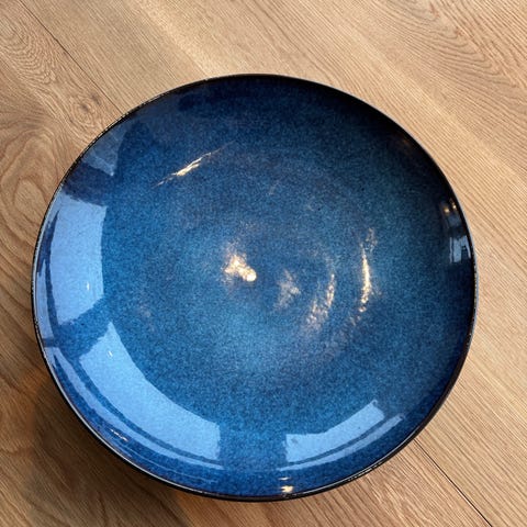 Bitz Serverings fad i mørkeblå keramik med en diameter på 40 cm. Fadet er velegnet til servering af salater og andre retter eller som frugt skål.