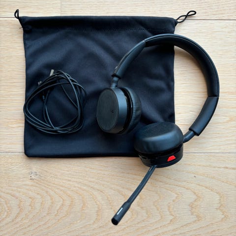 Trådløst headset med bøjle til rundt om nakken. Virkelig smart, når man dyrker motion, for så bliver det siddende. Brugt få gange.