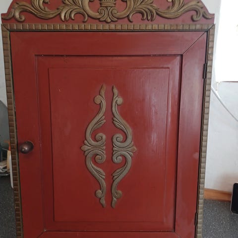 Antikt tobak-skab, nyklassisk stil og smagfuld renoveret i 60’erne med ny bemaling og ekstra skuffe nederst.
