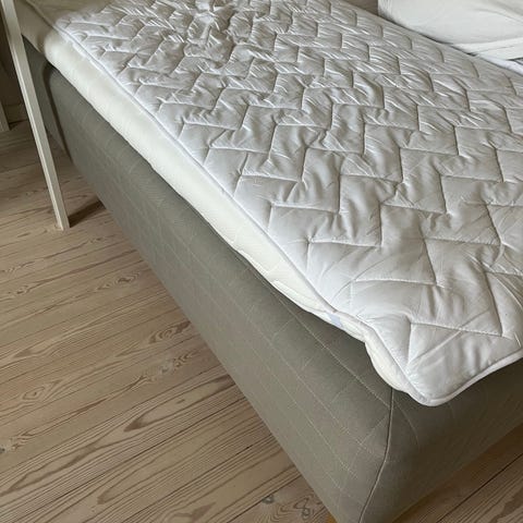 IKEA SKARER 2 stk senge boksmadrasser 90 *200 står som nye kan bruges sammen eller hver for sig topmadras i hvid. Topmadrassen er beregnet til brug oven på en madras for at give et ekstra komfortlag. Den har quiltet overflade og rektangulær form, velegnet til senge i tilsvarende størrelse. Kan anvendes i soveværelse eller gæsteværelse som ekstra lag på boxmadras eller springmadras. Kan sælges enkeltvis.