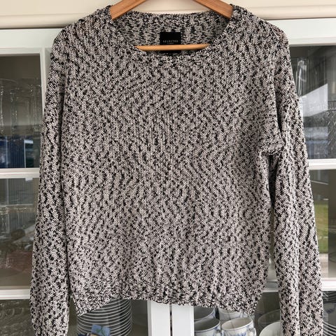 Flot klar grøn Twist & Tango striktrøje i 100 % økologisk bomuld, str. M. Super bomuldskvalitet. Brystomkreds ca. 116 cm, hellængde 60 cm. Ribkanter forneden og ved ærmeafslutning samt en god dobbeltrib i halskanten. Holdbar facon. Vasket 2 gange (i vaskepose). Fotos taget udenfor i dagslys (undtagen det sidste som er taget indenfor, hvor farven så synes lidt mørkere).