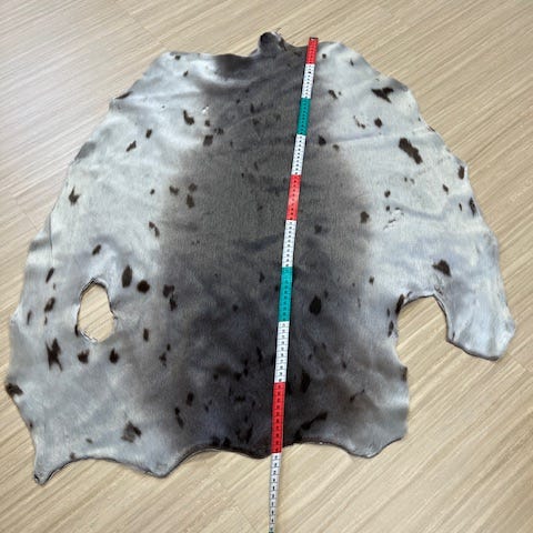 Mørkebrunt sælskind fra Great Greenland. Det er lidt kraftigt i selve skindet, men blødt og lækkert. Ud over luffehullet, er der et lille hul, se billede. Størrelse på de længste og bredeste steder: Ca 95 x 60 cm. Farven er ikk retvisende på billedet, skindet er smukt mørkebrunt. Sælges pga. allergi.