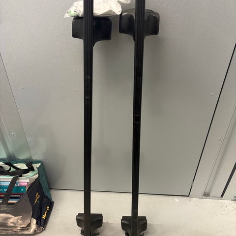Thule tagbøjler i sort. Sættet består af to tværstænger med fødder, der monteres på bilens tag. Egnet til montering af fx tagboks eller cykelholder, afhængigt af bilmodel og tilbehør. Materiale og præcise mål fremgår ikke af billederne og bør kontrolleres ved kompatibilitet med den pågældende bil. Tværstænger er 128 cm.