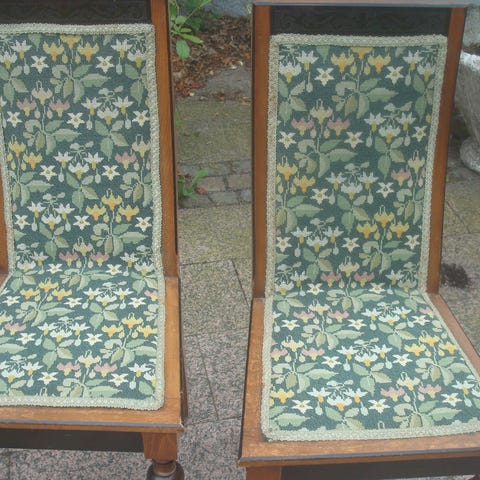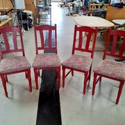 Træ, 3 store armstole. Rødmalede med motiver.