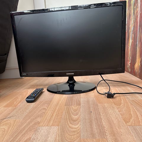 Samsung HDTV skærm med fjernbetjening. Skærmen har indbygget HDTV tuner og understøtter tilslutning via 2 HDMI-indgange samt analoge lyd- og videoindgange på bagsiden. Der medfølger original Samsung fjernbetjening. Velegnet som tv-skærm eller sekundær skærm til f.eks. medieafspiller eller spillekonsol, hvor der er behov for HDMI-tilslutning.
