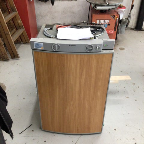Rigtig pænt køleskab, kun brugt ganske kort tid. Kører på gas, 12 volt og 230 volt