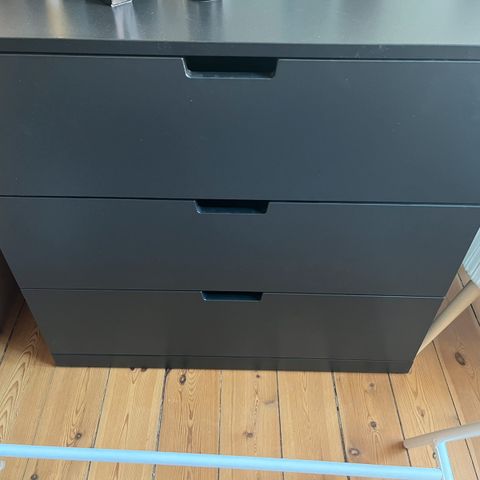 Nordli kommode fra Ikea sælges. Bemærk at den er med seks skuffer. Den er med sokkel men uden topplade, da vi har brugt den under et skrivebord. Man kan nemt montere en mdf-plade ovenpå. Den er i fin stand men har lidt brugsspor. Nypris med seks skuffer er ca. 1500,-. Prisen er fast.