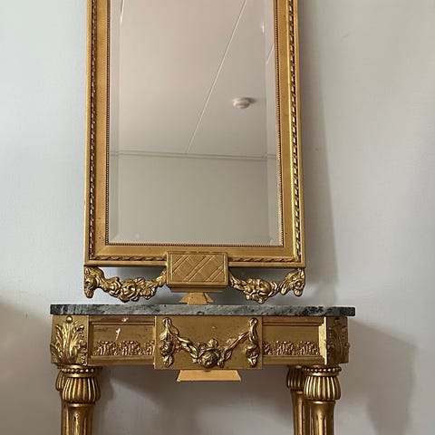 afsyret gammelt soveværelsessæt., andet, Gammelt flot afsyret og velholdt soveværelse møbelsæt bestående af et spejlmøbel, med facetslebne spejle, 130cm bredt, højde 185cm (øverst kant spejl), dybde 50 cm.