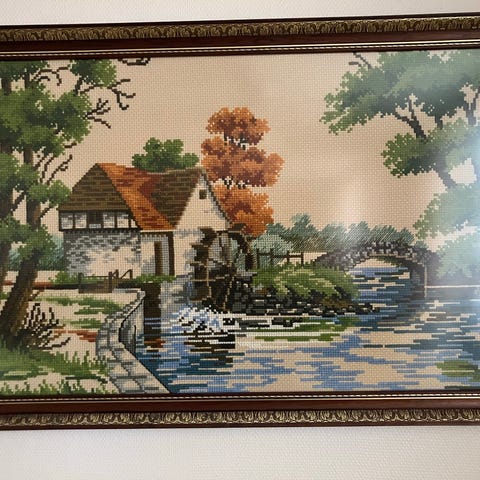 uglemotiv broderi billede i ramme( hjemmesyet )