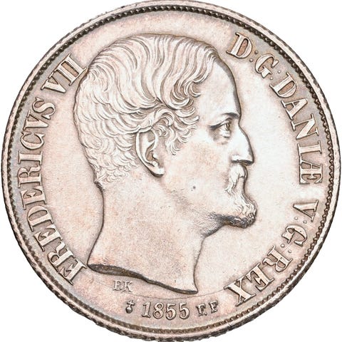 Frederik VII, rigsbankdaler 1851 VS, Sieg 5, H 5, kv. 1/1+-1, ks.