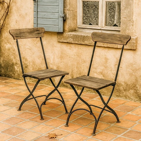 Fine gamle caféstole (jernstel og træ) i forskellige farver (lys tyrkis, blå og grøn). 18 stk. Pris per stk 250,- kr.