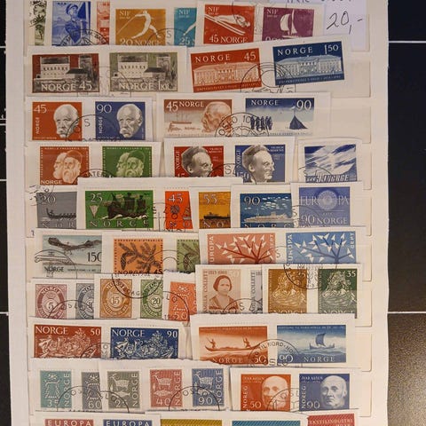 Frimærker bestående af blandede frimærker monteret på planche. Forskellige motiver, farver og udgaver kan ses på billedet, herunder både enkeltfrimærker og serier. Minimums pr salg er 20 plancher