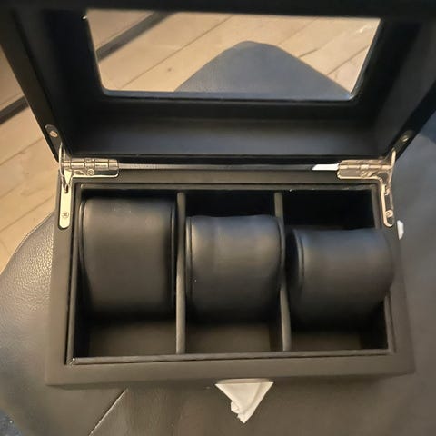 Sælger denne stilfulde urboks med plads til op til 10 ure. Den er ideel til at beskytte samlingen mod støv og ridser, mens urene præsenteres flot gennem glasset.