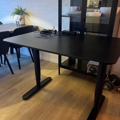 Hæve sænke bord fra ikea, brugt i ca 1 års tid fejler intet, der følger en gratis forlænger ledning med med 4 stik og 2 usb som er designet til bordet