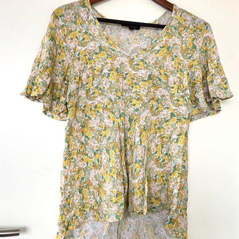 Flot mønstret bluse som går til livet, løse ærmer, i size small, kun brugt en enkelt gang
