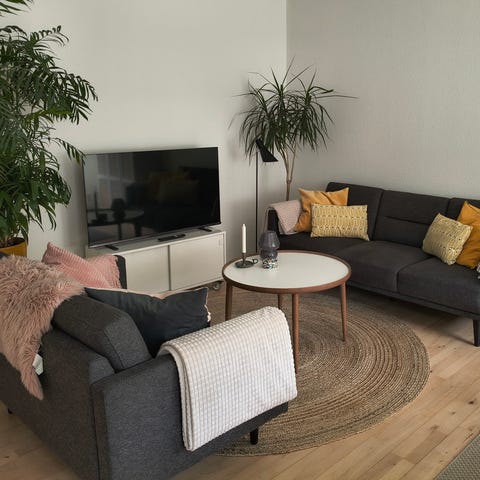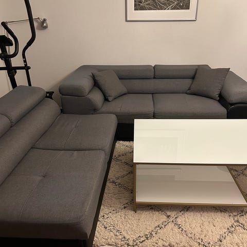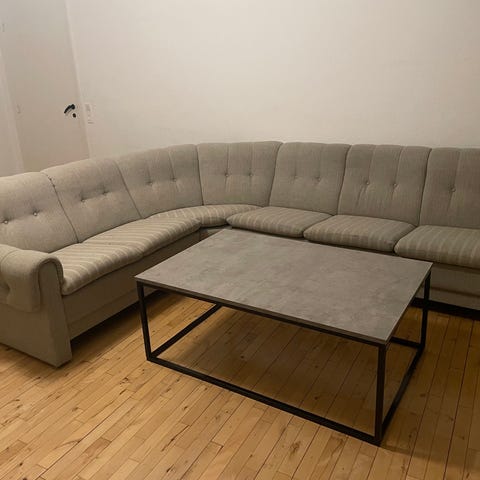 2 sofabord medfølger. Et lille hak i kanten på det lille. Det store måler: Bredde: 80 cm. Længde: 110 cm.