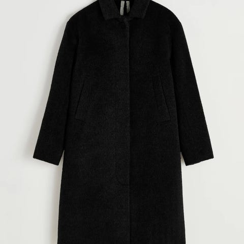& Other Stories frakke til kvinder i størrelse L. Frakken er sort og fremstillet i uld med glat foer indvendigt. Den har klassisk krave, gennemgående lukning med knapper foran og to skrå lommer i siderne. Længden går cirka til knæet afhængigt af højde. Egnet som yderjakke i køligere vejr.fremstillet i Lama uld, foer bomuld meget lækker frakke.