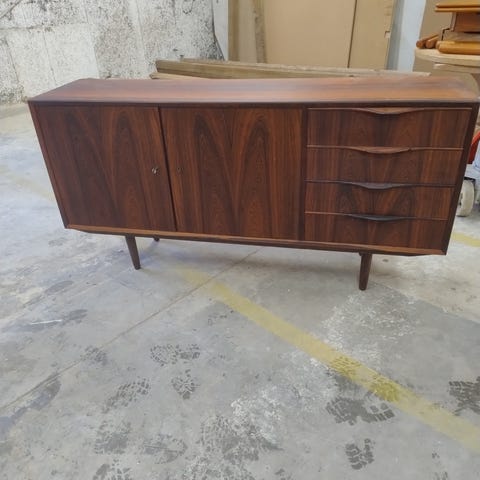 Palisander skænk med jalousilåger og skuffer. Fin stand, dog et par lette skjolder på overfladen.
