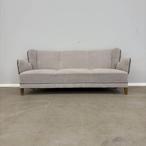 Sælger denne lækker retro 3 personers sofa. Sofaen er blød og med dejlig siddekomfort. Den står flot i rummet med en pæn ryg og kromben giver den et let udtryk. Den er brugt, men har stadig gode år i sig.