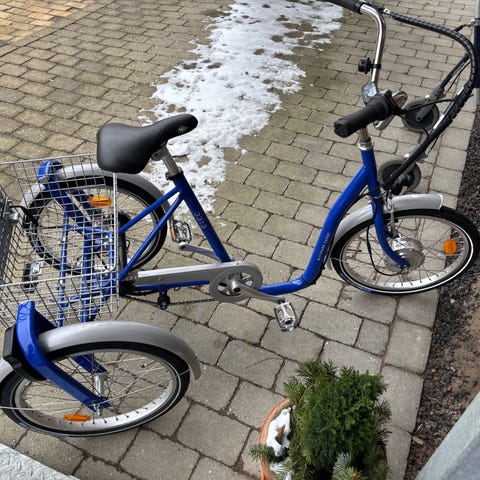 Cyklen har kørt 10 km. - Fra forhandleren og til garage. Monark elektrisk cykel med 20" hjul til unisex. Modellen er en trehjulet elcykel af højeste kvalitet med lav indstigning, som giver stabilitet under kørsel. Cyklen har kurv/bagagekurv bagpå til transport af mindre varer eller tasker. Egnet til daglig transport på korte og mellem-lange afstande. Farven fremstår som blå med lyse stel- og hjuldetaljer. Cyklen er udstyret med styr, sadel og pedaler i standardudformning for komfortabel kørsel. Nypris 29.000 kr.