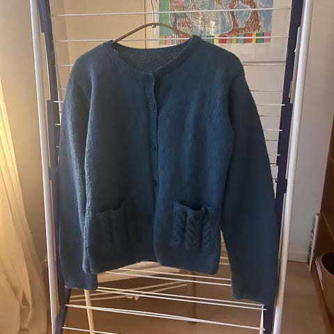 Den er fremstillet i ren uld og er blå. Modellen har enkel, åben front med knaplukning øverst, lange ærmer og påsyet Busnel-logo på ærmet. Velegnet som varm overdel til hverdagsbrug eller som let overtøj i køligere vejr. Sidelommer og skulderpuder (kan nemt fjernes).