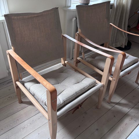 2 stk. helt intakte KK47000 lænestole, Safari er designet af Kaare Klint (1933) og udført af Carl Hansen & Søn. ( kan sælges enkeltvist).