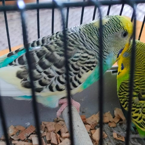 Et chamerende undulatpar fulde af kærlighed og kys. Hunnen er australsk og er en modig og nysgerrig pige som spiser af hånden, hvis man har noget lækkert foder, hirsekolbe eller grønt. Hannen er en flot og stolt engelsk undulat som er lidt mere forsigtig og skal lokkes lidt mere, før man vinder hans tillid. Han spiser også gerne af hånden, når først tilliden er etableret. Buret står altid åben, så de frit kan flyve - Vi foretrækker en køber som kan give parret plads og friheders til at flyve.