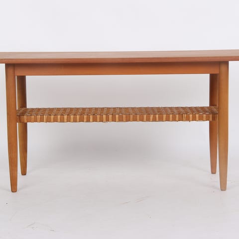 Flot retro teak sofabord med hylde.