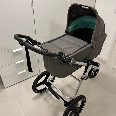 Brugt klapvogn fra Bumbleride i fin stand, som har nogle enkelte pletter, en stang der er knækket, men som ikke har nogen indvirkning på klapvognens funktionalitet (ses på billedet), og så er der et lille hul i stoffet i opbevaringsrummet under. Vi har brugt den i flere år til vores barn uden problemer. Der følger en lift fra Bumbleride med også, som kun er brugt meget lidt og er i rigtig fin stand.