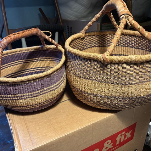 Flettet kurv med låg og læderstropper