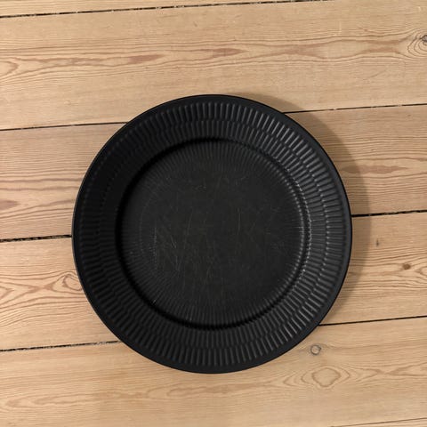 Royal Copenhagen tallerken i sort. Tallerkenen har rillet kant og mat overflade. Velegnet som middagstallerken eller serveringstallerken i køkken og spisestue. Designet passer ind i en moderne borddækning og kan kombineres med andet stel fra Royal Copenhagen i lignende stil.