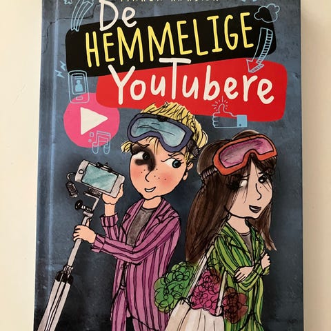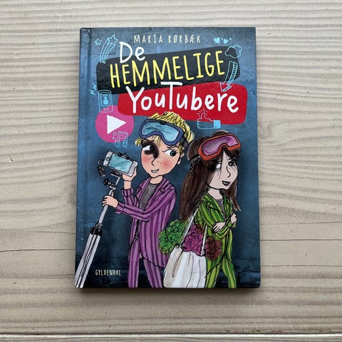 Gyldendal De Hemmelige Youtubere bog. Børne- og ungdomsbog på dansk om Magnus, Kristina og Victor, der laver hemmelige YouTube-videoer og deltager i en konkurrence om at blive den bedste nye youtuber. Paperback med illustreret forside og tekst i sort-hvid indeni. Egnet til læsere i skolealderen, der kan lide historier om venskab, skoleliv og digitale medier.