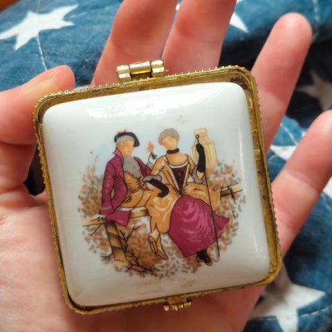 Messing, Lille skrin, Lille messing skrin med emalje (tror jeg) dekoration 6 cm høj og 6,5 cm i dia. Lidt buet bund