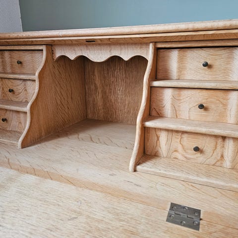 RESERVERET Super super fint redesignet chatol af egetræ 😍 Det er blevet tapetseret nede i skufferne samt på skuffefronter. Træet har fået olie og tapetet har fået 3 gange lak.