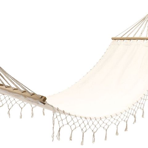 Trip Trap, Sambito hængekøje. Hængehøjen er i den lyse farve "Natur" og er af teask og bomuld. Mål: B: 350 cm, L: 140 cm