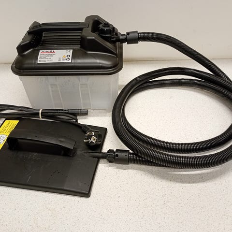 Uåbnet tapetafdamper tapetfjerner med beholder, slange og damphoved (se billede 2).