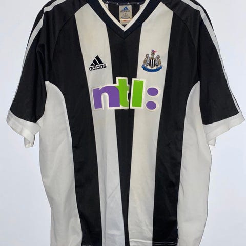 Sælger en flot Newcastle United hjemmebanetrøje fra midt-00’erne med den ikoniske ntl: sponsor.