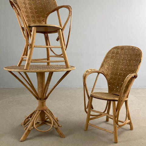 Unikke og smukke Le Corbusier fletstole med tihørende BORDE I FORSKELLIGE STØRRELSER.