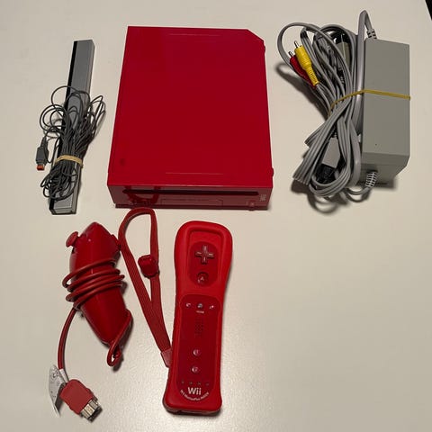 Nintendo Wii: Rød. Mario 25th anniversary. m. 1x nunchuck, 1x wii mote samt 2 spil.