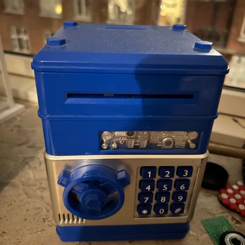 Lån & Spar sparebøsse blæksprutte rød/grå plast