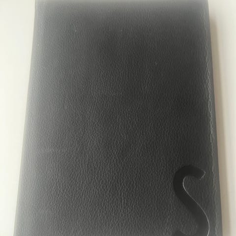 Helt ny og flot Designletters notesbog med læderomslag. Bogstavet “S” er printet i omslaget med Arne Jacobsen typografi. Måler ca 15 x 21 cm. Fra røg- og dyrefrit hjem. Ny pris ca 499 kr.