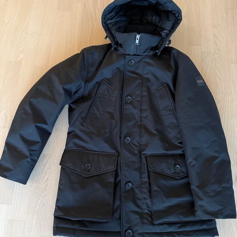 Jakken er sort, og er kun brugt 5 - 10 dage på et ferieophold ved Vesterhavet i december.