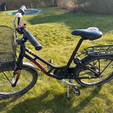 Winther 300 børnecykel med 20" hjul i sort. 6-9 år. Cyklen har fuld kædeskærm, skærme for og bag samt bagagebærer. Der er støtteben og refleks på pedaler og hjul. Stellet er udformet til børn og sadel- og styrhøjde kan justeres. Velegnet som hverdagscykel til skole- og fritidskørsel for børn i den størrelse, der passer til 20" hjul. Med 3 indvendige gear, lås og baglygte på. Cyklen har naturligvis lidt ridser hist og pist men alt fungerer og er en rigtig go cykel til den mindste. Har lige fået service og er nu klar til næste ejer.