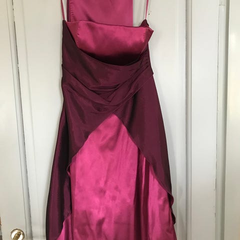 Der er skåret over brystet og måler 119 cm i længden fra under armen. Der hvor den sidder strammest under brystet måler den ca 74 cm.
