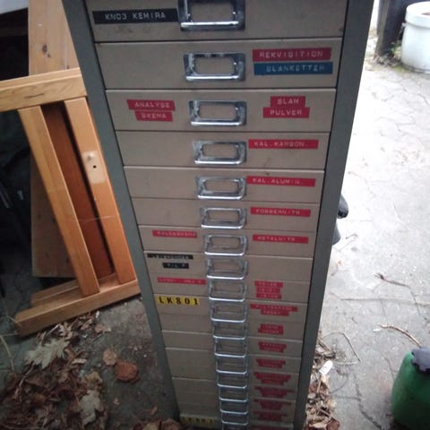 Robust og rummeligt metalskab med 16 separate skabe.